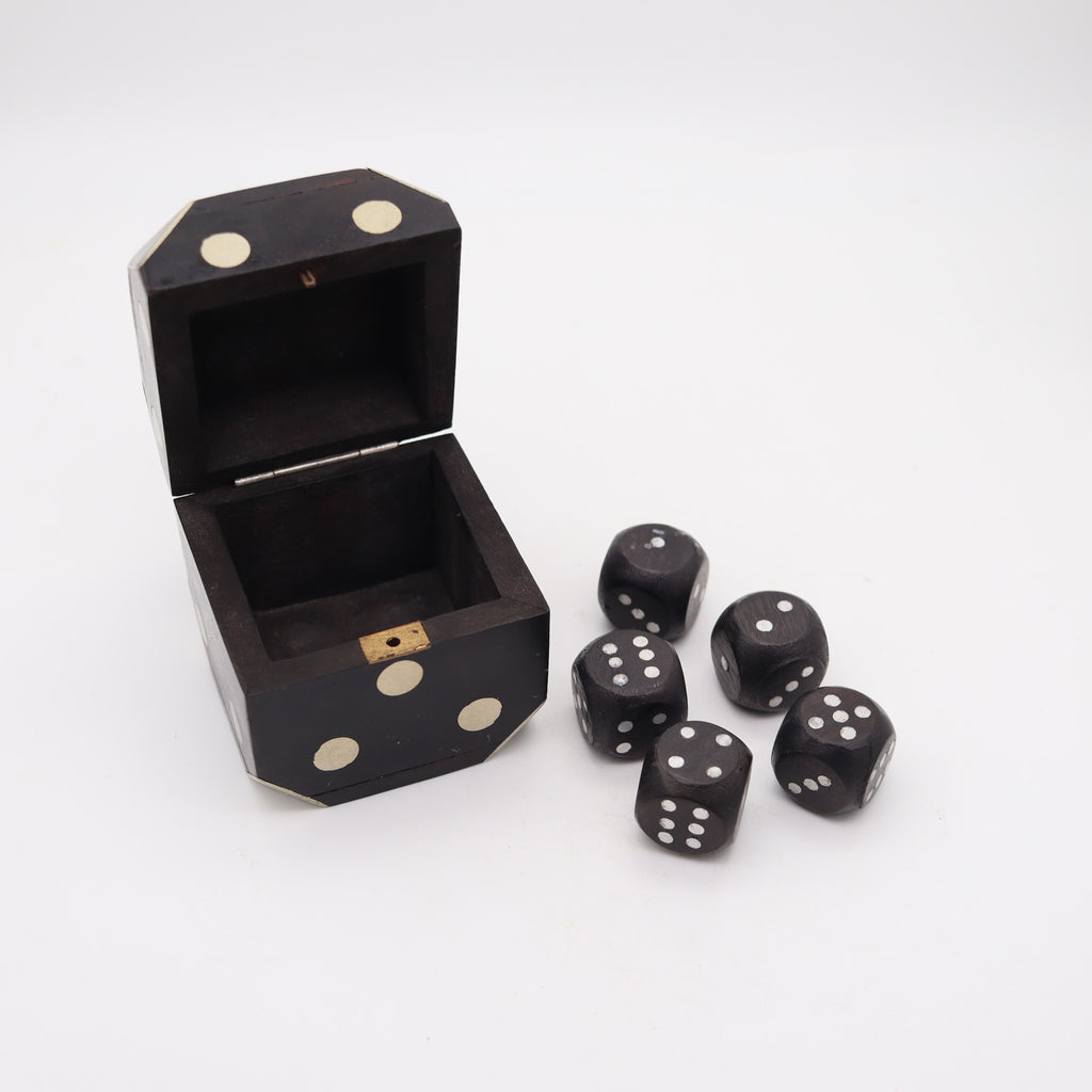 WILLIAM SPRATLING 1950 Desk Box Set Of Dices In Carved Wood & Nickeled Silver