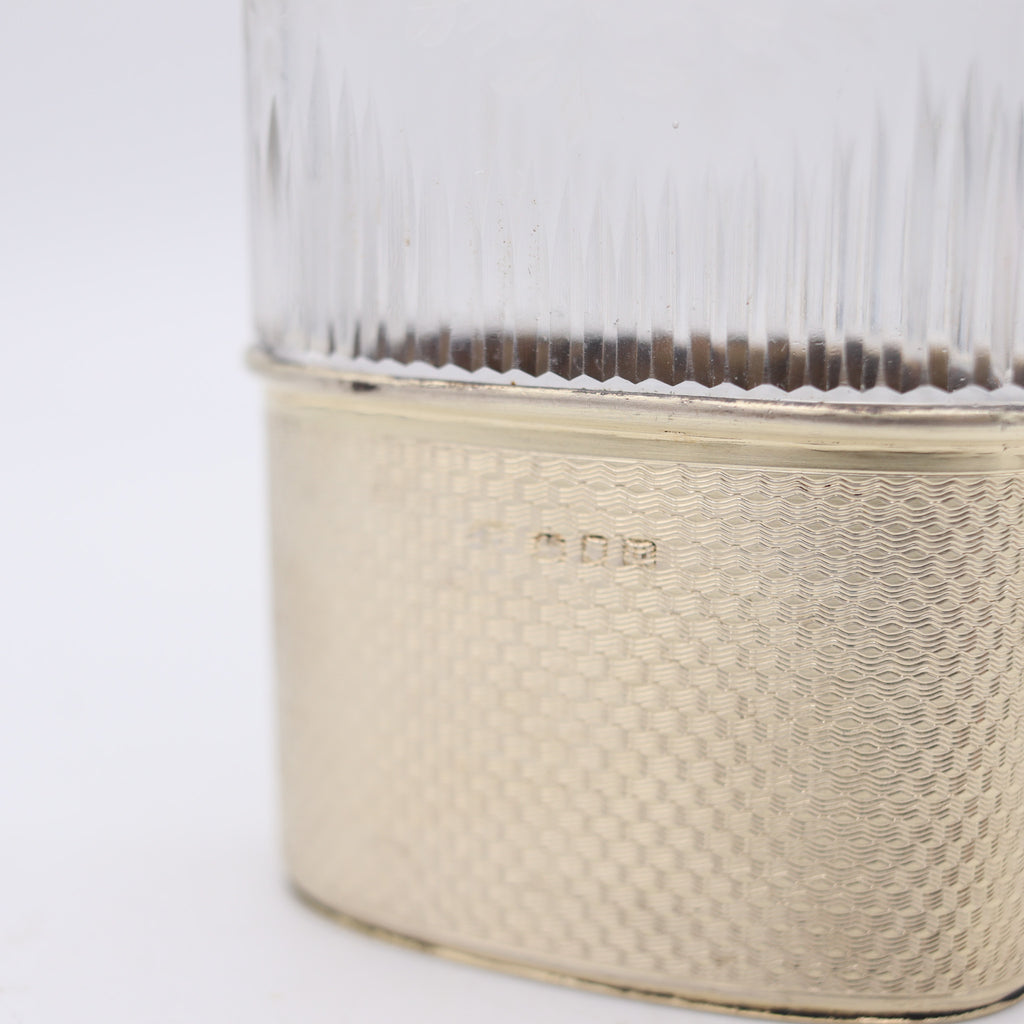 ERNEST DREW & SONS 1927 London Liquor Flask In Engraved Crystal & Sterling Silver