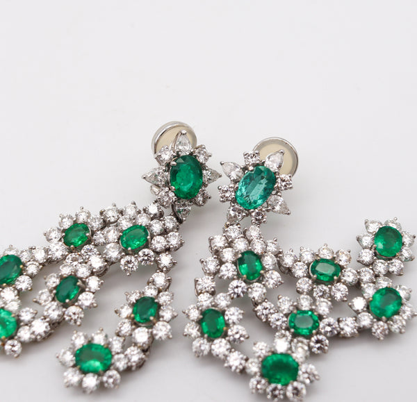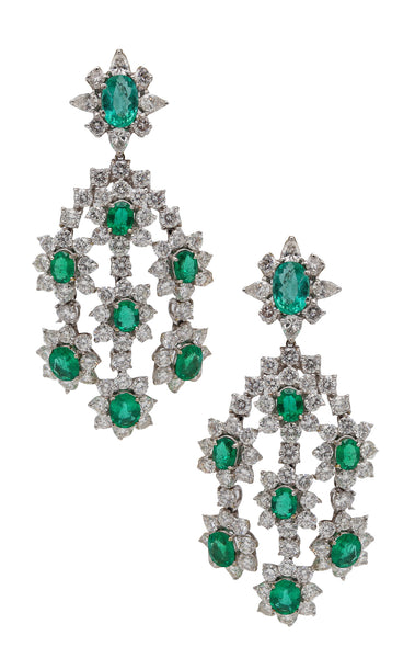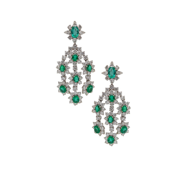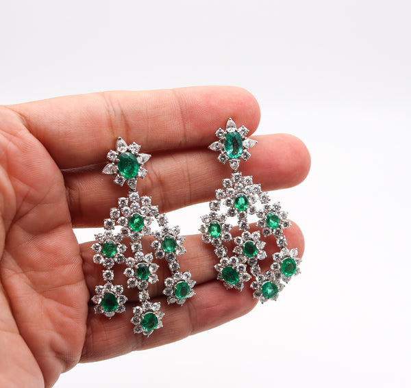 -Chandelier Cluster Dangle Drop Earrings In 18Kt Gold With 31.72 Ctw In Diamonds And Emeralds