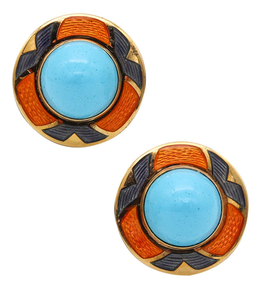 -Leo De Vroomen London Enameled Earrings In 18Kt Yellow Gold And Turquoises